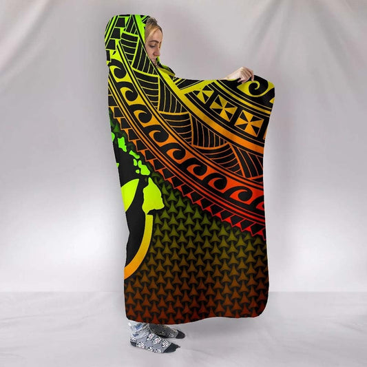 Polynesian Hawaii Kanaka Maoli Hooded Blanket - Reggae Vintage Polynesian Patterns