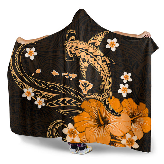 Hawaii Hooded Blanket Kanaka Map And Shark Tribal Tattoo