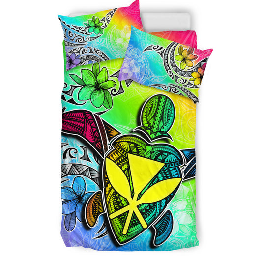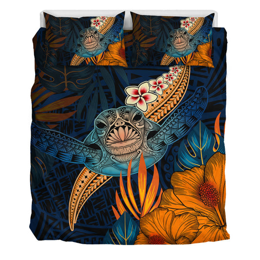 Hawaii Bedding Set Polynesian Pattern Plumeria Turtles
