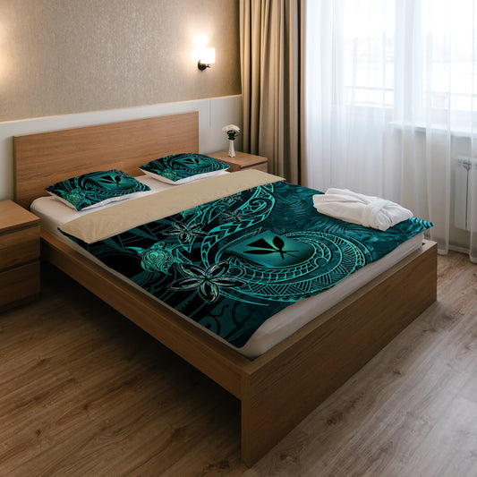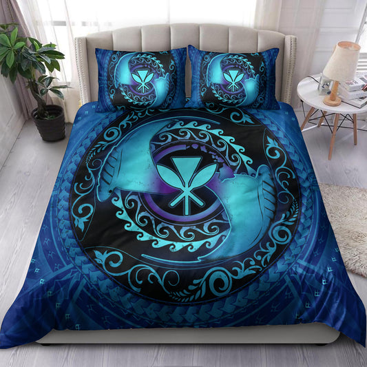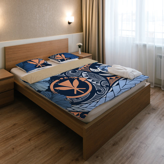 Hawaii Bedding Set Kanaka Maoli Turte Blue Hibiscus