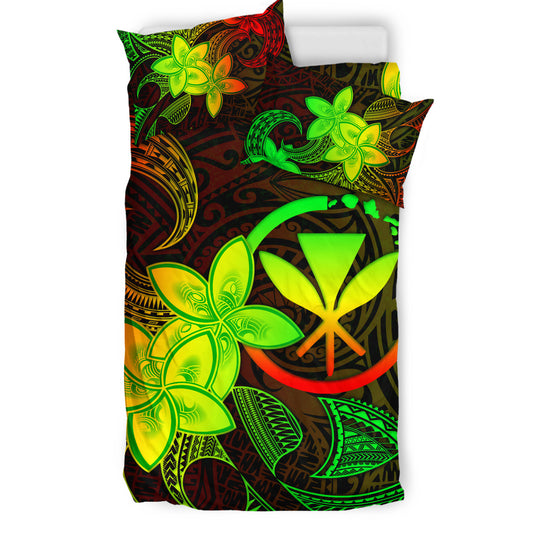 Hawaii Bedding Set Kanaka Maoli Plumeria Flowers Vintage Style Reggae Colors