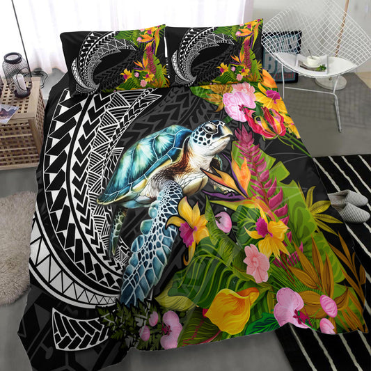 Hawaii Bedding Set Polynesian Tribal Floral Turtle