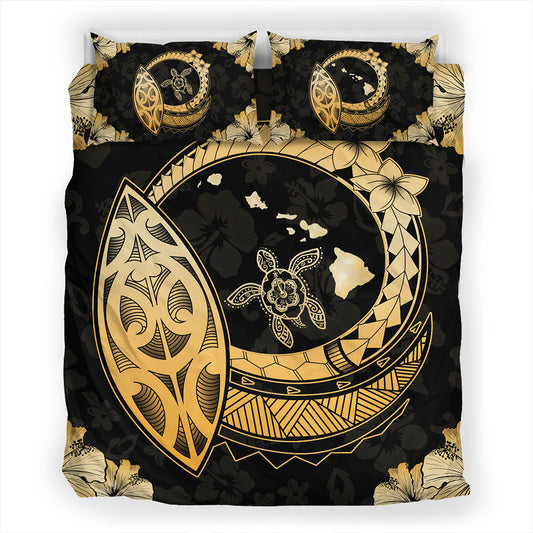 Hawaii Bedding Set Kakau Honu Arc Polynesian Gold