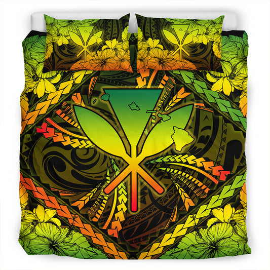 Hawaii Bedding Set Kanaka Maoli Map Hibiscus Polynesian Kanu