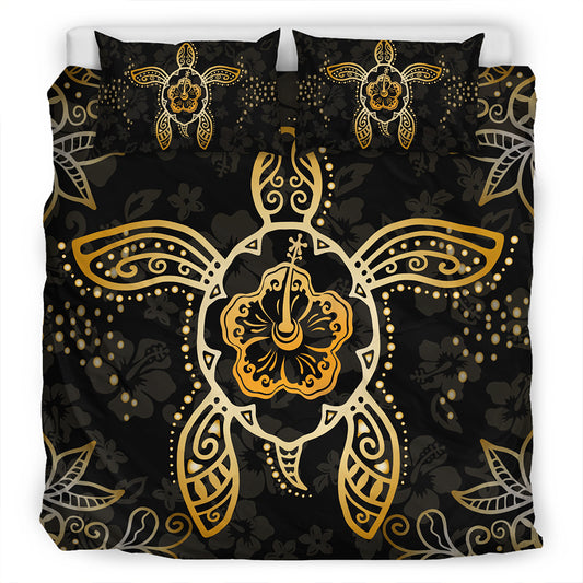 Hawaii Bedding Set Golden Hibiscus And Turtle
