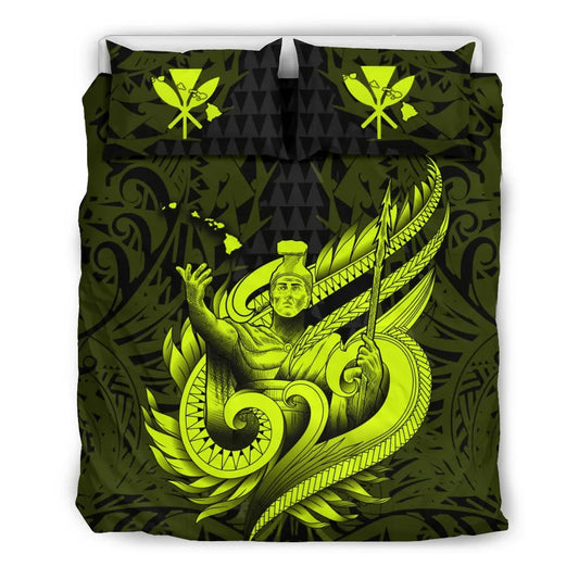 Polynesian Bedding Set - Hawaii Duvet Cover Set Kamehameha King Yellow Color