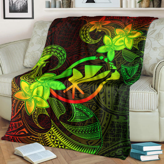 Hawaii Premium Blanket Kanaka Maoli Plumeria Flowers Vintage Style Reggae Colors