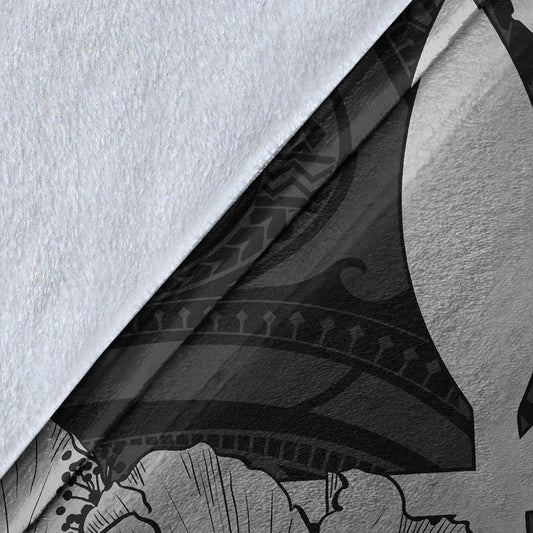 Hawaii Turtle Premium Blanket Polynesian Hibiscus Art Gray