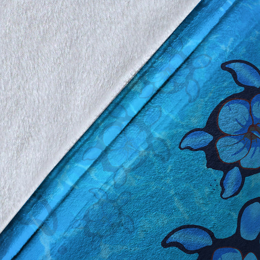 Hawaii Premium Blanket Turtle Hibiscus Pattern Blue