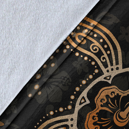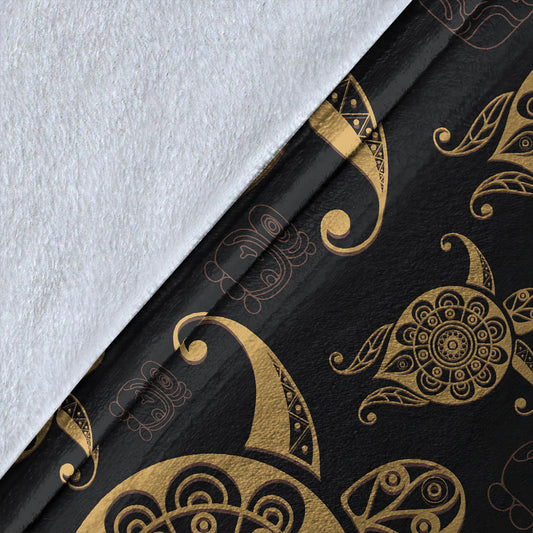 Hawaii Premium Blanket Turtle Hibiscus Map Polynesian Family Gold
