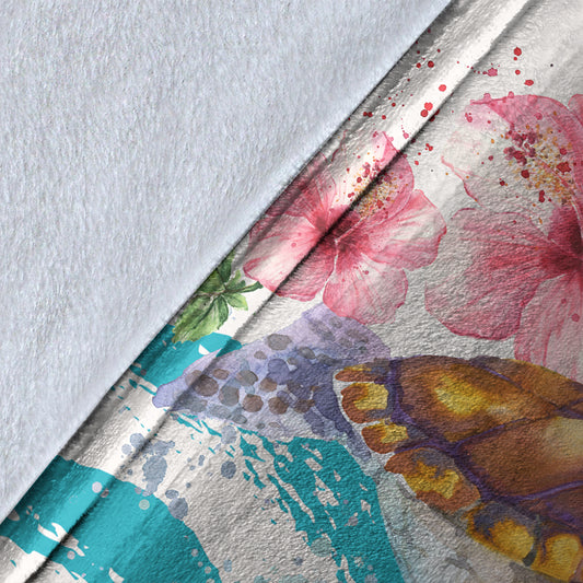 Hawaii Premium Blanket Turtle Hibiscus Ocean