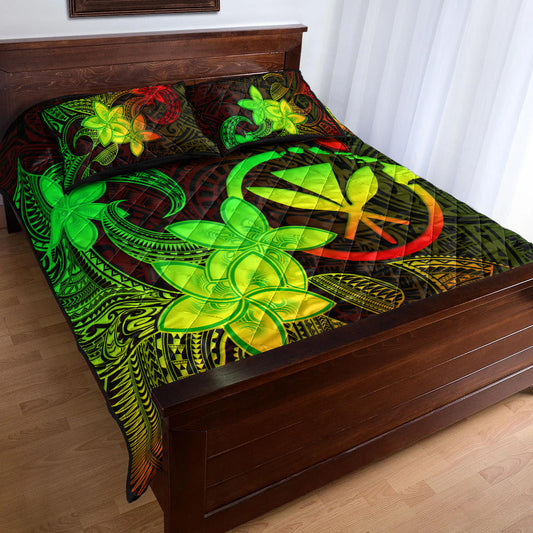 Hawaii Quilt Bed Set Kanaka Maoli Plumeria Flowers Vintage Style Reggae Colors