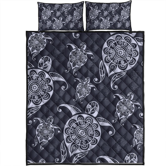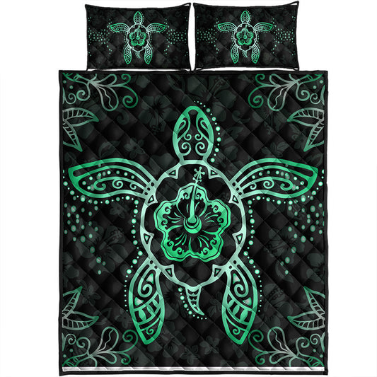Hawaii Quilt Bed Set Turtle Hibiscus Waves Polynesian