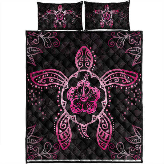 Hawaii Quilt Bed Set Turtle Hibiscus Pink