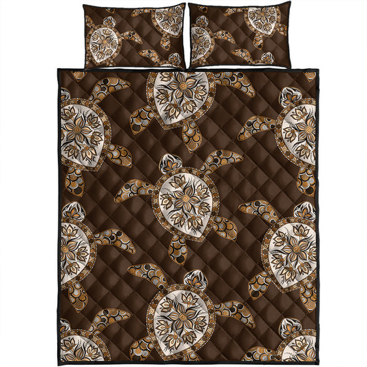 Hawaii Quilt Bed Set Turtle Pattern Golden