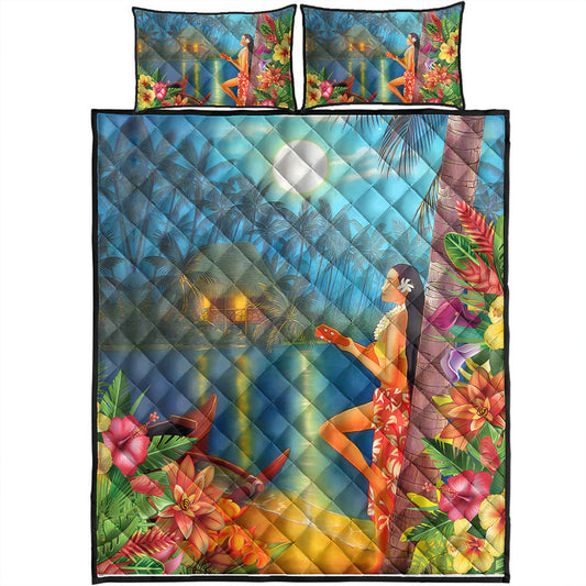 Hawaii Quilt Bed Set Hibiscus Polynesian Hula Girl