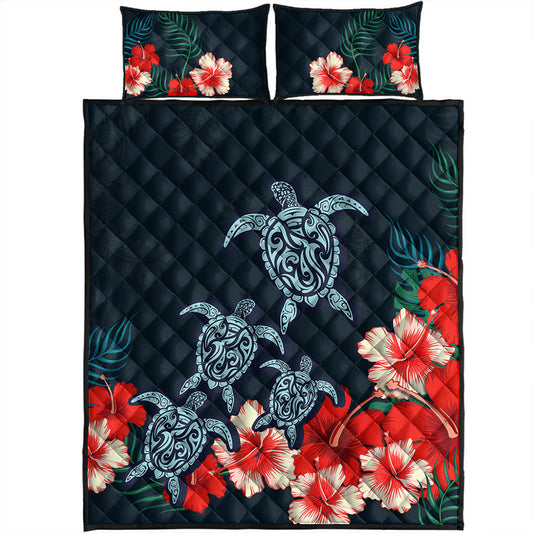 Hawaii Quilt Bed Set Hibiscus And Turtle Skillful