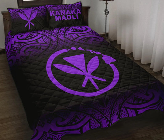 Hawaii Quilt Bed Set - Kanaka Maoli Polynesian Tattoo Black Fog Style Purple Version