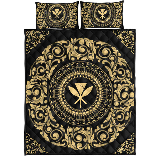Hawaii Quilt Bed Set Kanaka Map Tribal Wave