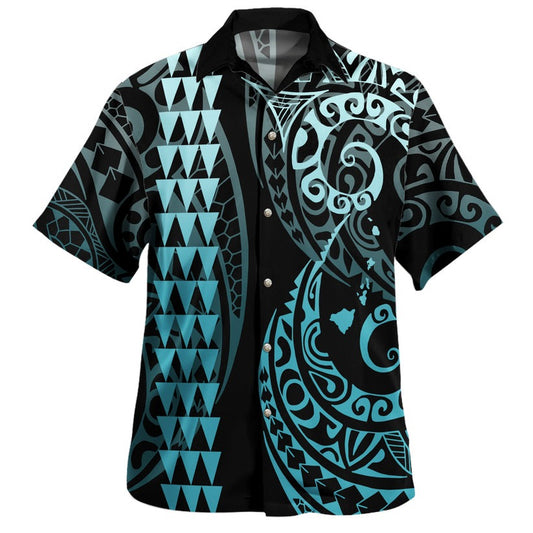 Hawaii Combo Shirts And Shorts Hawaiian Map Kakau Style Turquoise
