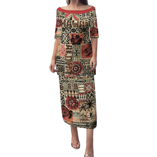 Hawaii Combo Puletasi And Shirt Hawaiian Style Tribal Fabric Patchwork