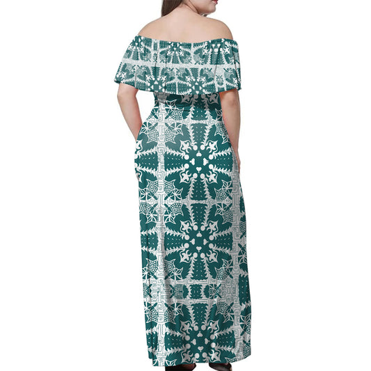 Hawaii Kanaka Maoli Combo Off Shoulder Long Dress And Shirt Flower And Turtle