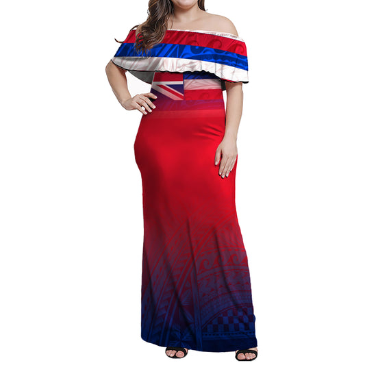 Hawaii Kanaka Maoli Combo Off Shoulder Long Dress And Shirt Rainbow Style