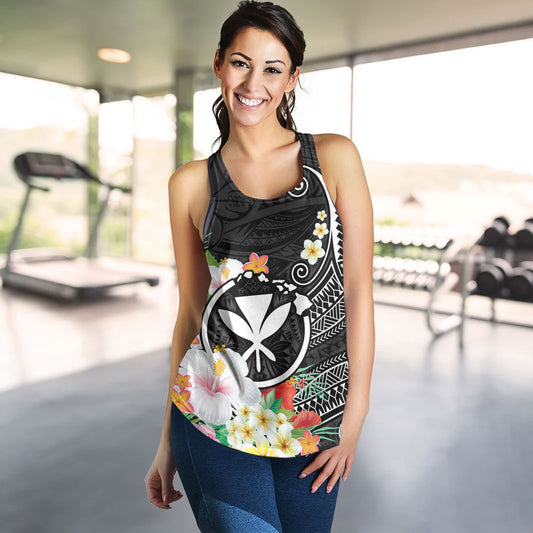 Hawaii Women Tank Custom Polynesian Curve Pattern Design With Tropical Floral Collection