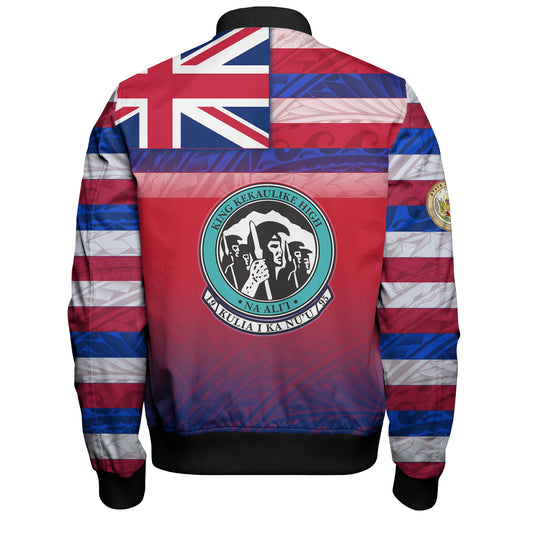 Hawaii King Kekaulike High School Bomber Jacket Flag Color With Traditional Patterns