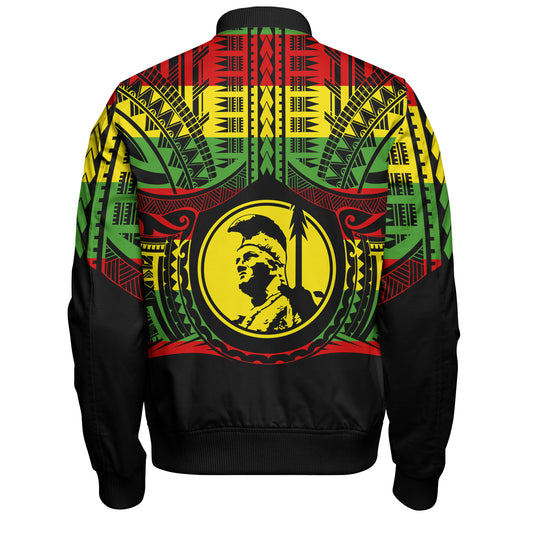 Hawaii Custom Personalised Bomber Jacket King Kamekameha Black and White Polynesian