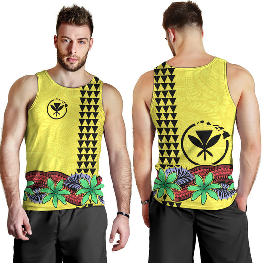 Hawaii Tank Top Kanaka Maoli Map Seal Tropical Flowers Yellow Color