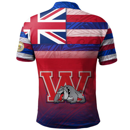 Hawaii Waialua High and Intermediate School Polo Shirt Flag Color With Traditional Patterns