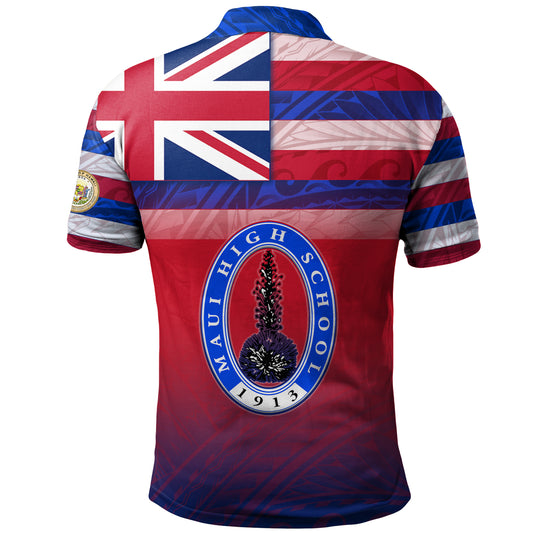 Hawaii Maui High School Polo Shirt Flag Color With Traditional Patterns