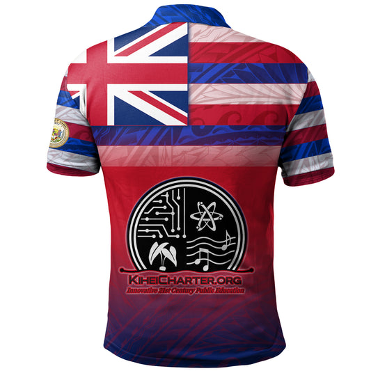 Hawaii Kihei Charter School Polo Shirt Flag Color With Traditional Patterns