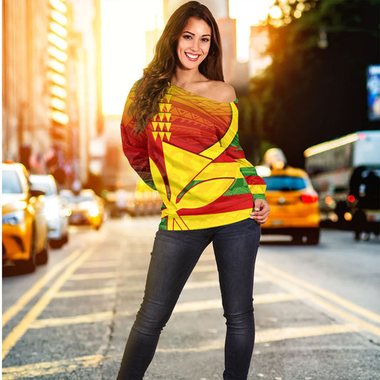 Hawaii Off Shoulder Sweatshirt Polynesian Tribal Motif Reggae Color