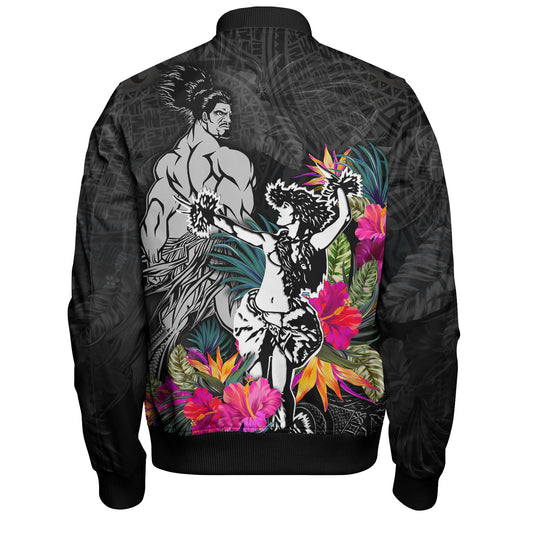 Hawaii Bomber Jacket Hawaiian Girl And Warrior With Tropical Flowers