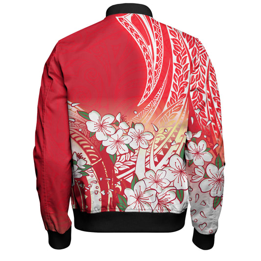 Polynesian Bomber Jacket Polynesian Pattern Style White Flowers