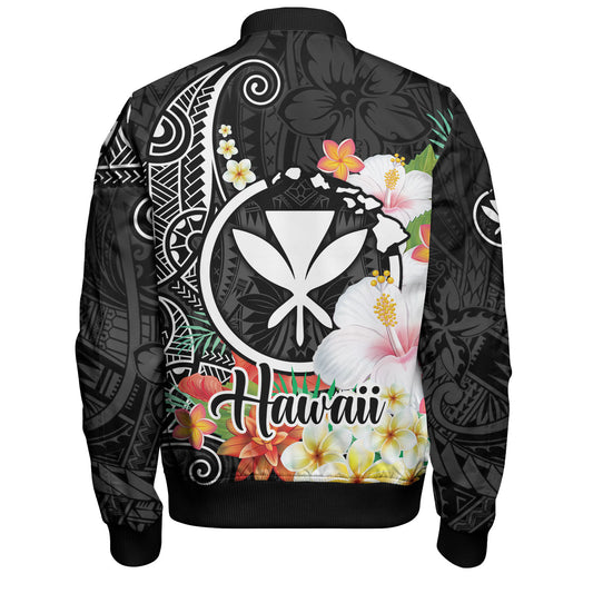 Hawaii Bomber Jacket Custom Polynesian Curve Pattern Design With Tropical Floral Collection