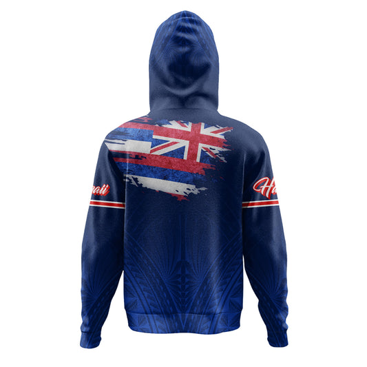 Hawaii Hoodie Hawaii Flag Blue Color Polynesian Patterns Grunge Style