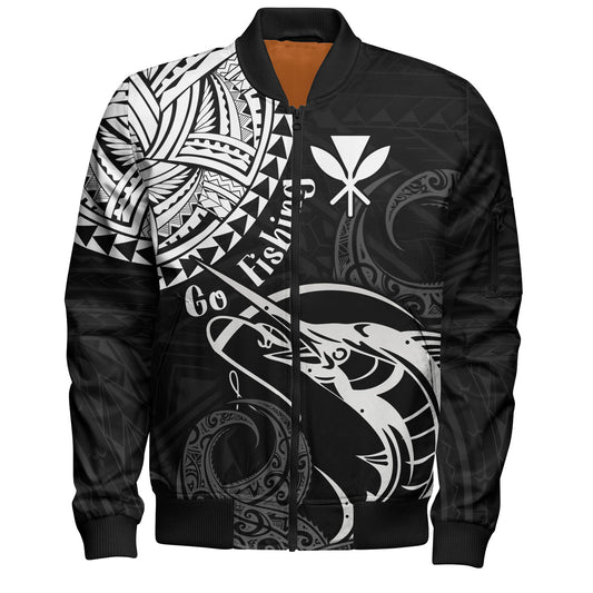 Hawaii Bomber Jacket Go Fishing Polynesian Tribal Patterns