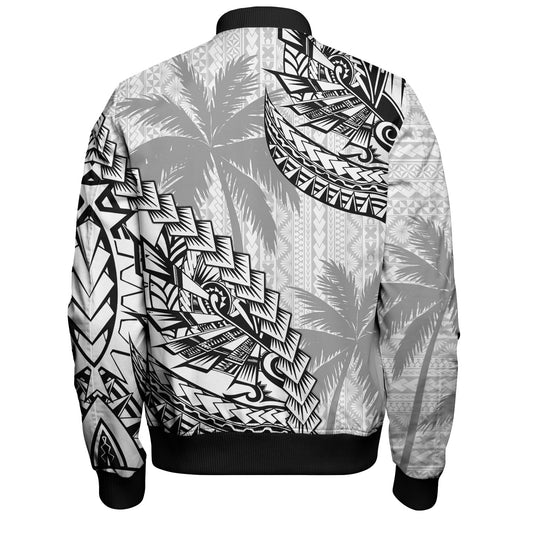 Hawaii Bomber Jacket Polynesia Tribal Tattoo Grey