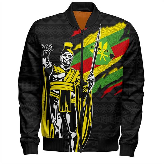 Hawaii Bomber Jacket Tribal Flag King Kamehameha Crack Style