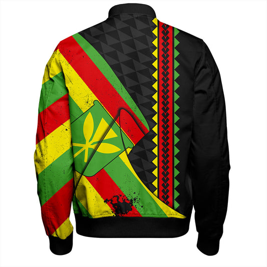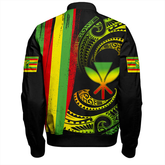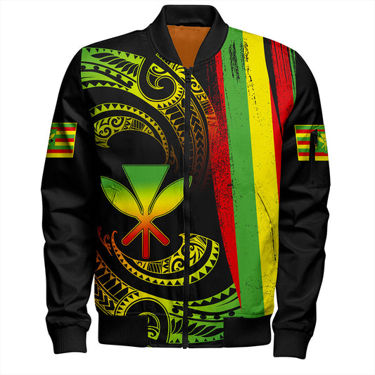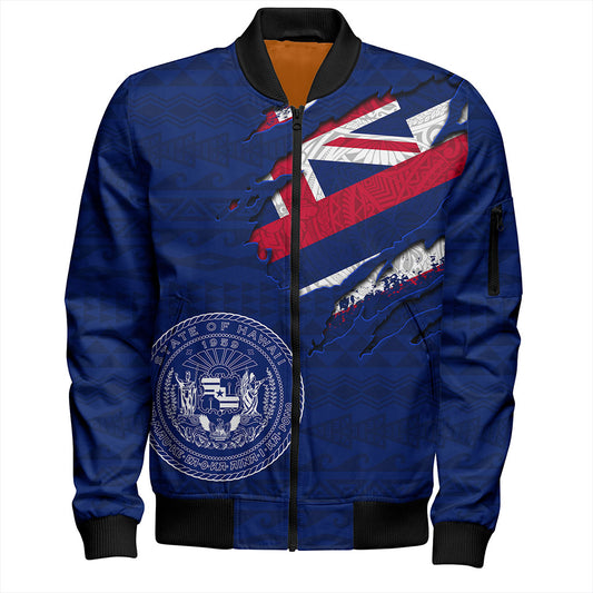 Hawaii Bomber Jacket Polynesia Tribal Kanaka Maoli Flag Crack Style