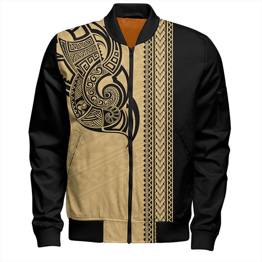 Hawaii Bomber Jacket Polynesia Tribal Tattoo Gold