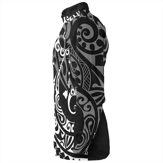 Hawaii Long Sleeve Shirt Hawaiian Map Kakau Style Gray