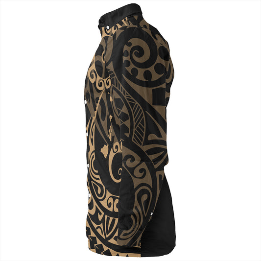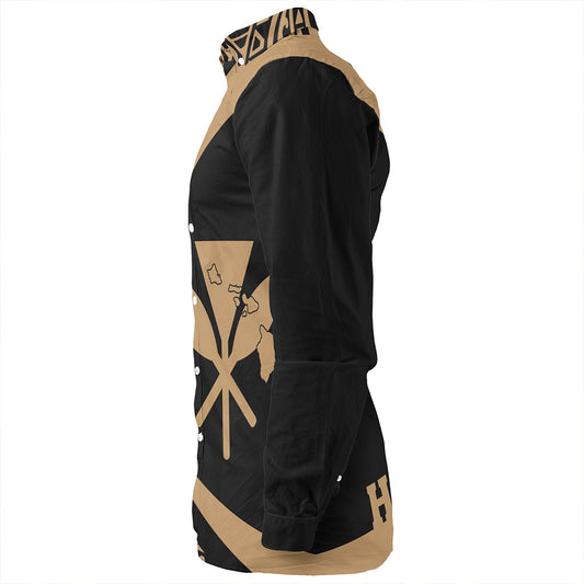 Hawaii Long Sleeve Shirt Hawaiian Map Kakau Style Gold