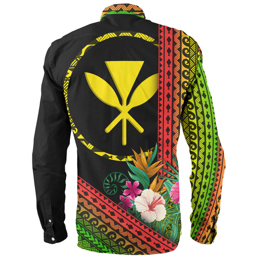Hawaii Long Sleeve Shirt King Kamekameha Tropical Flowers Hawaii Polynesian