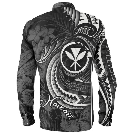 Hawaii Long Sleeve Shirt Hawaiian Flag Polynesian Tribal Hibiscus Style
