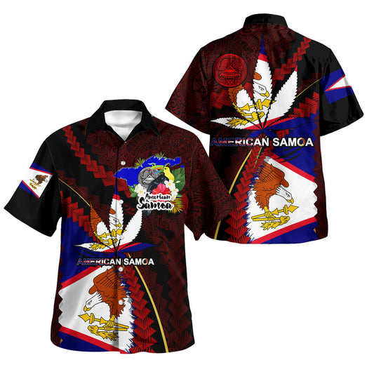American Samoa Hawaiian Shirt - Custom American Samoa Pride Bald Eagle And Turtles Polynesian Patterns