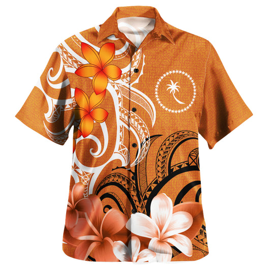 Chuuk Custom Personalised Hawaiian Shirt Polynesian Floral Spirit Orange